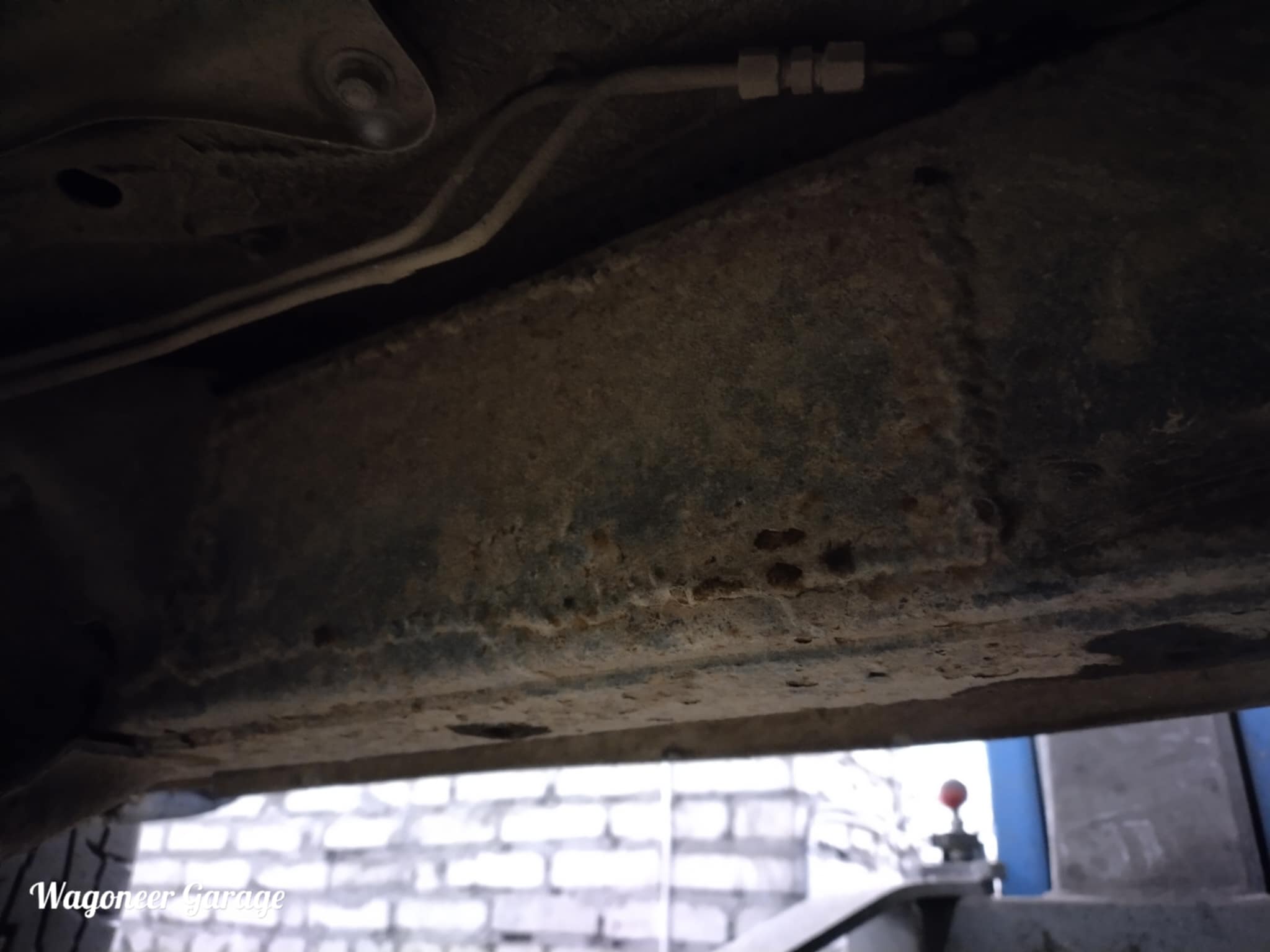 Tõstukil selgus,et raami juba keevitatud. Need risti torud ka korralikult uute vastu vahetatud. Aga raami tagaots on mäda. Loomulikult on ka karpide asemel makroflex ja mastiks. Paak ka lekib. Lisaks on tagaluuk totaalselt mäda nii ülevalt kui alt. Lapitud seda kilekoti ja pahtliga.
