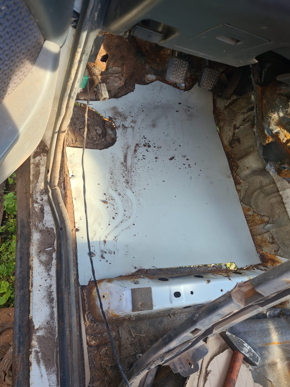 Ma lõikasin valmis Rangerile juhi jalgealuse ja punktisin selle kinni. Viimane raamikinnituspolt sai ka induktsiooni abiga lahti meelitatud.
