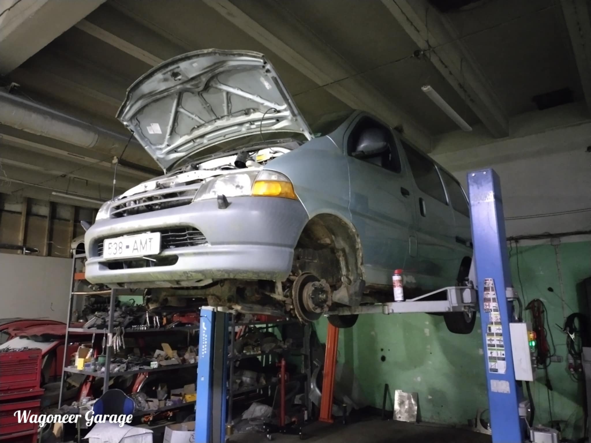 Kuna natuke pidi töö asju ümber sättima sai Hiace aetud suuremasse ruumi tõstukile. Peab natuke alustamiseks motivatsiooni koguma,sest poldid just kõige sõbralikumalt ei avane.