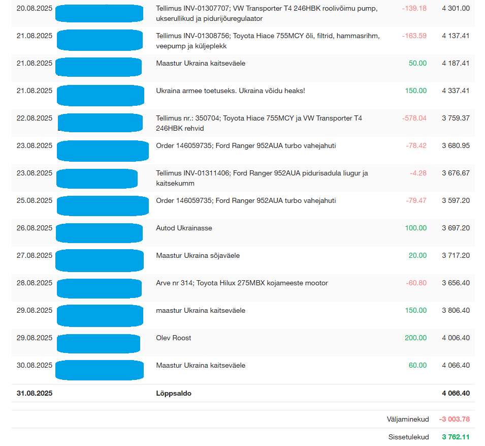 Lisan ka Põhja-Tallinna abigaraaži augusti kontoväljavõtte
