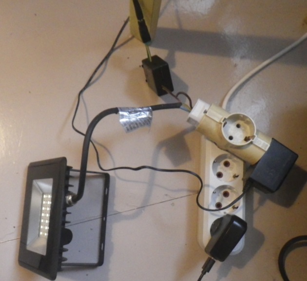 Led-prožektor, radiorelee ja sellele 12V toide kokku monteerida ei ole ka õnneks kuigi keeruline ega kallis.