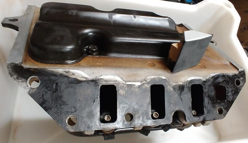 Kuna värvi jäi üle, siis sellega sai lapitud ka sisselaskekolle vee / õli kahjustused alumiiniumi peal. Kummikinnas käes ja nii sõrmega hõõrusin õhukese kihi värvi peale (eelnevalt karukeelega ja vigastuste juures pehme traatharjaga puhastus). Seal, kus vigastused, mitu korda.