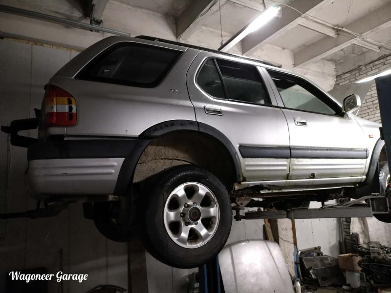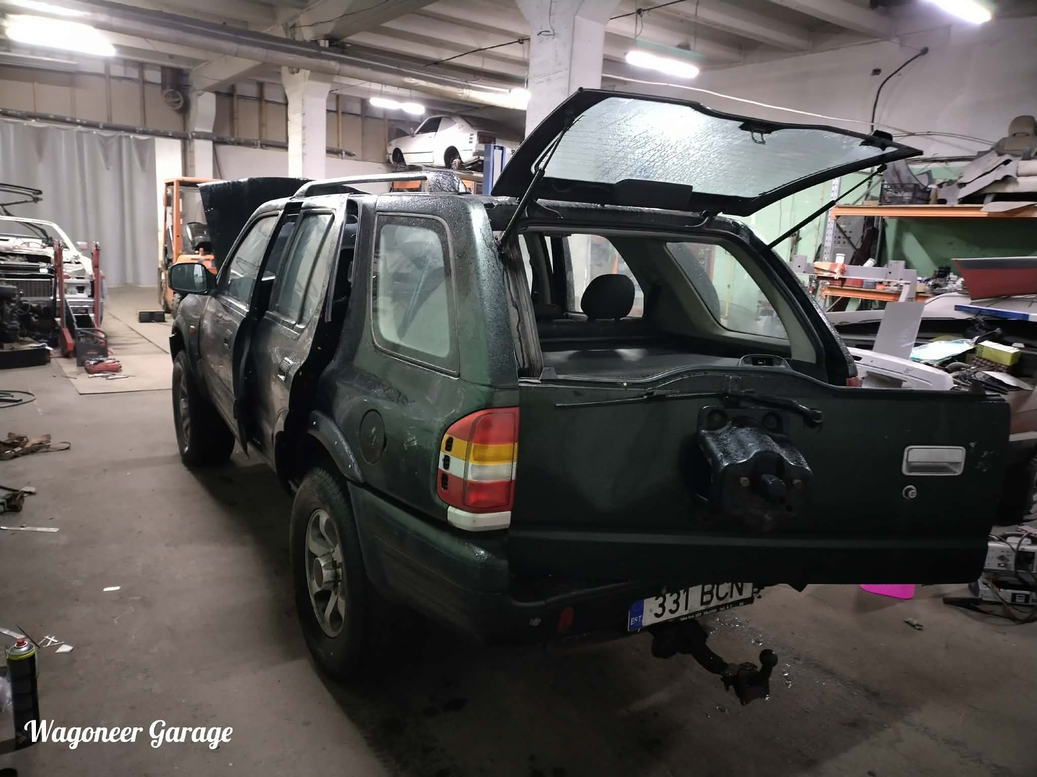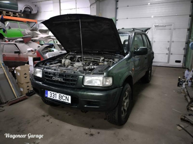 Teise ruumi sai sisse veeretatud hõbedane Frontera. Esmane ülevaatus raami kohalt on väga positiivne. Amordi ja vedrude kinnitused kõik olemas ja tugevad. Isegi plastist põhjakatted on all. Tagumiste karpide otsad loomulikult olematud. Samuti üks tagauks on akna tihendi alt läbiva roostega(korralik uks seina ääres olemas). Seisma jäämise põhjus,et peale KSP remonti sõitis nädalake ja siis kooles maha ja enam ei käivitanud. Ma rookisin kõik lapitud voolikud vahelt välja ja panin kanistrist toitmise. Pika ketramisega läks käima,aga üle 2300rpm ei lähe ja jube toss on sumpsist väljas(valge ja diislihõnguline). Korra tekkis tunne,et just kui oleks pump väga vale süütenurgaga. Ma ei ole uurinud kuidas pumba võll hammakale kinnitub ja kas seal nihkumine oleks võimalik)