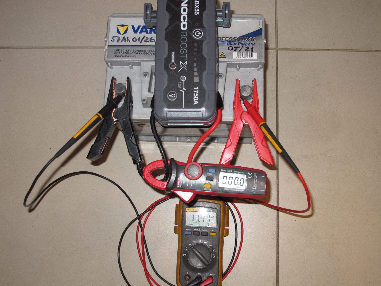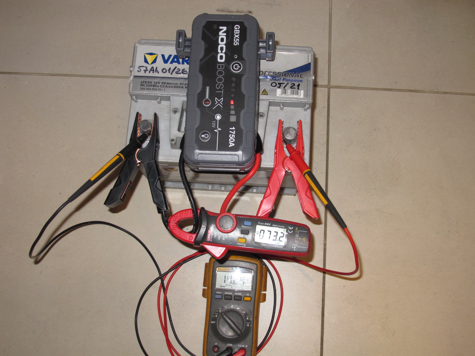 Pinget veidi kehvalt näha, see on 14,2..14,3 vahemikus pidevalt. Välja ei lülitu, vool langeb stardi 82A pealt 73 peale ja sinna jääb. Ca 15s proovisin ja rohkem ei raatsinud retsida, kuna 1,3C on inetu käitumine. Kes nõrkuse märki julgeks näidata ja juhendit loeks, saaks vist teada, et tuleb oodata niikaua, kuni roheline led põlema jääb ja siis starterit anda. Viimasel pildil, mida ei pannud, roheline põles.