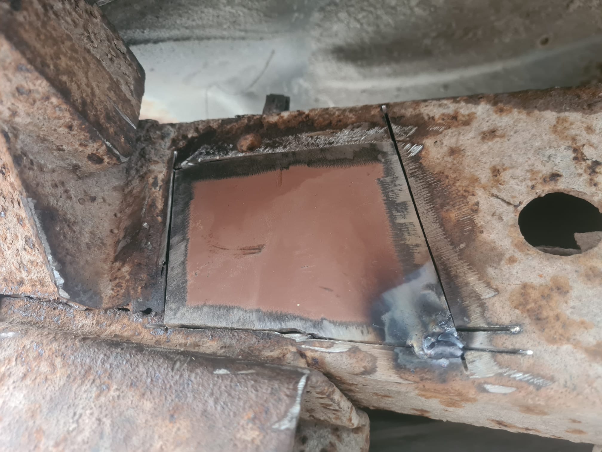 Ma lõpetasin vasaku raamikülje lappimise. Parema poole lappisin ära väljast. Väga täpne paik tuli, et tore kohe kinni lasta. Amotridele lasin uued kaitsetorud. Amordid ise on töökorras aga olid ülevalt päris räbalad. Siis võtsin maha paagi ja sain teada, et sisekülg tuleb päris pikalt asendada.