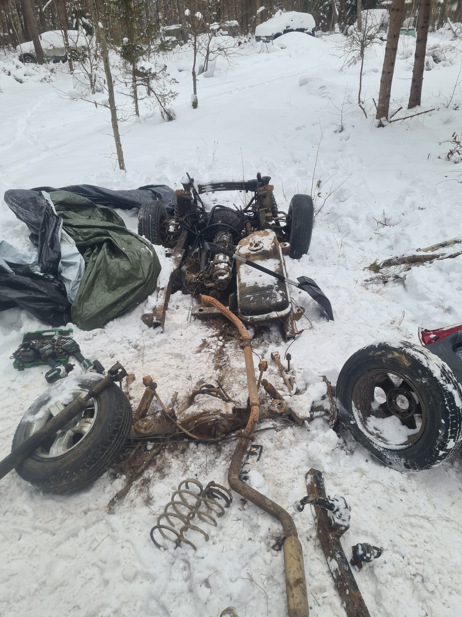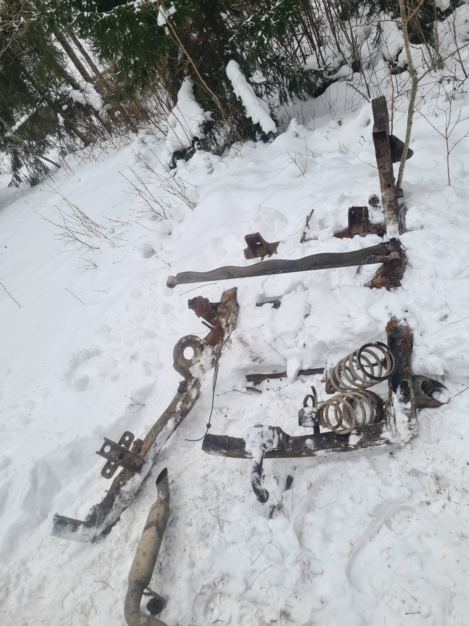 Siis rappisin veel varuosadeks jäetud Sorento raami ja võtsin sealt Haljala Sorentole puuduvate juppide tegemiseks tagaosa. Ega sellest enam palju alles ei olegi. Rattad viskasin ka koormasse ja lähevad AT rehvidega alla ja teised kaasa.