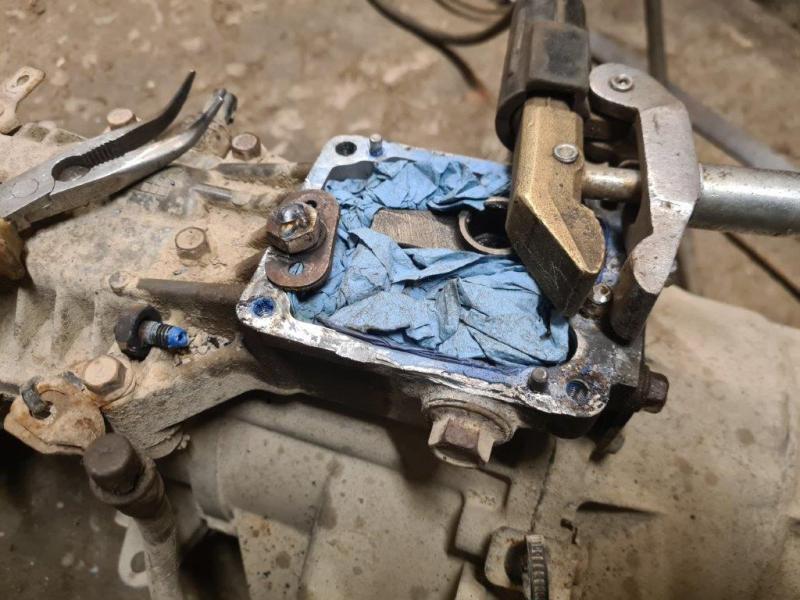 Mina ja hr AP päästsime lahti tagasilla ja eemaldasime vedrud. Siis võtsime küljest käigukasti ja siduri. Käigukasti kaane eemaldamisel oli juba enne 5-st poldist 2 ära murtud. Ma murdsin ühe veel, 1 tuli lahti ja ühe kuumutas fööniga lahti Linnuke. Pärast kui kast maas siis keevitasin mutrid peale ja võtsin murdunud köndid välja. Aga isegi maas oli seda kaant päris raske sisse murdunud poldiköntide pärast kätte saada. Aga kätte tuleb ta ikka saada, sest muidu jääb kast peale tagasipanekuks liiga viltu.