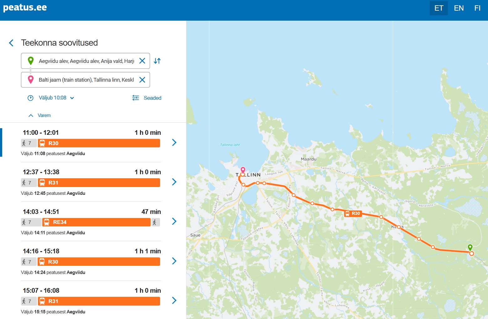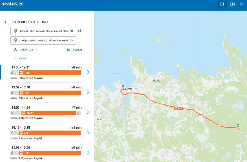 Äkki te lihtsalt ei oska? Panin alguseks Aegviidu ja lõpuks Balti jaama ja sain sellise tulemuse