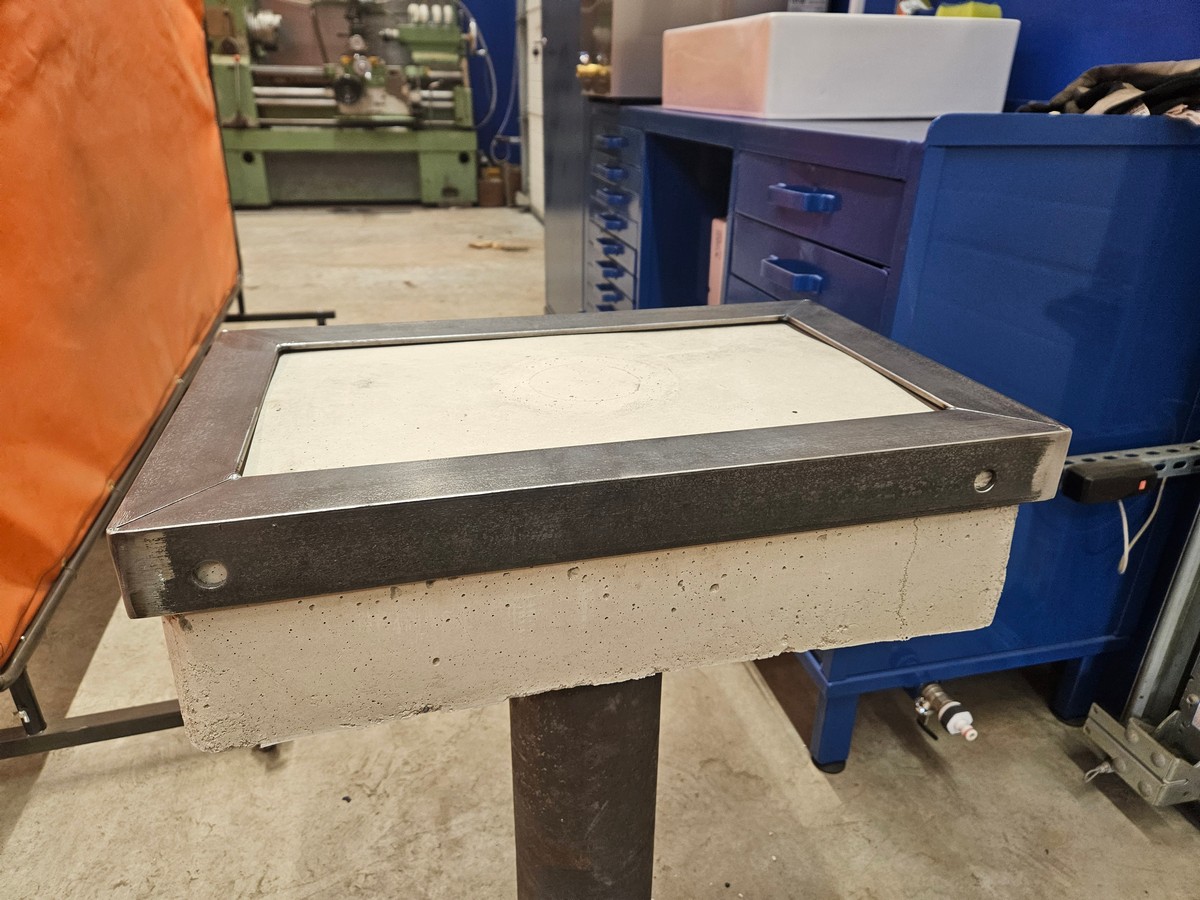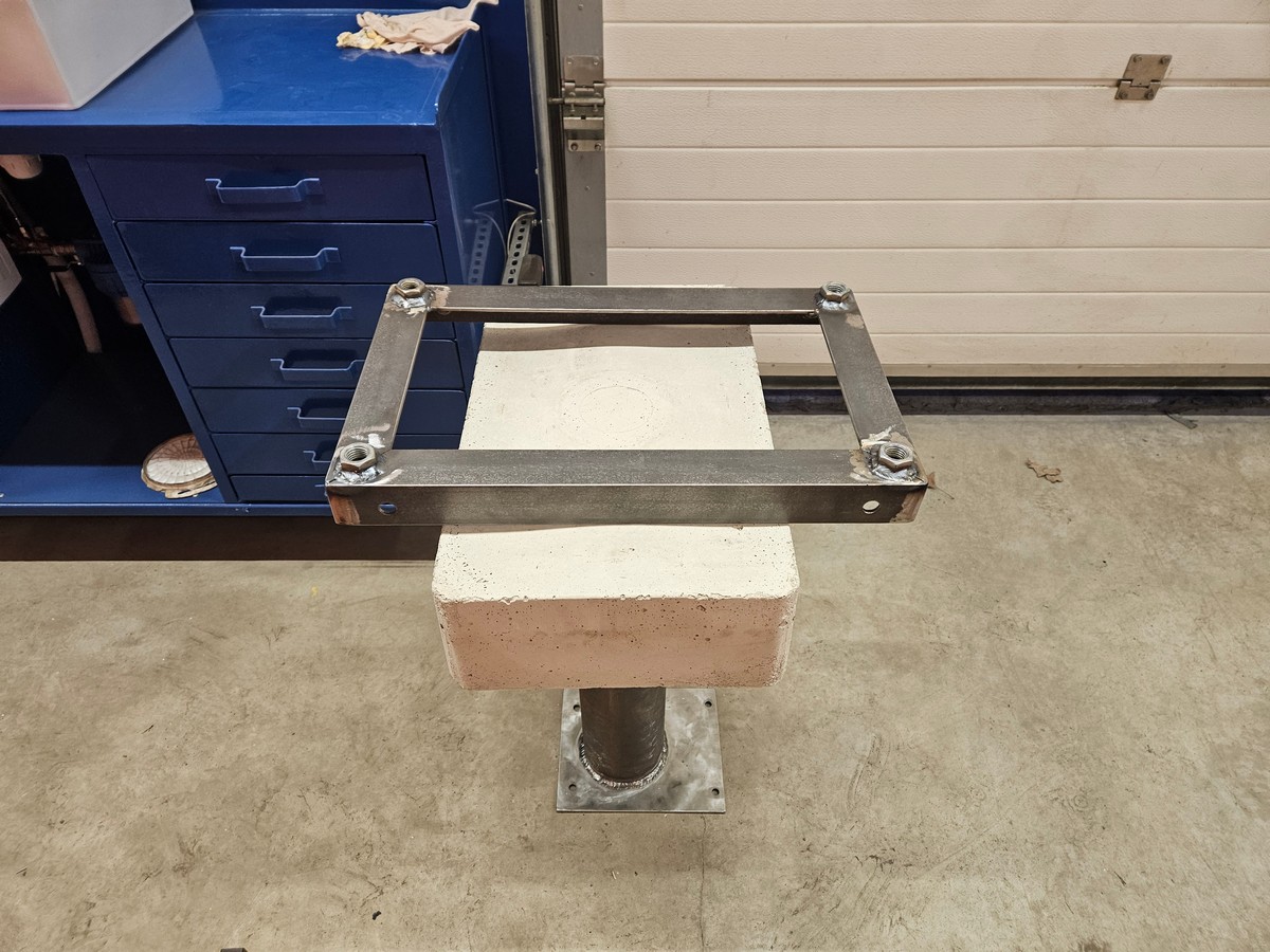 Ning käiapink prooviks jalgadele. See oli õige otsus, et käia all olevat plaati sai toru suhtes pisut ettepoole liigutatud ning et betoonankur maast kõrgemal on. Saapa nina saab vajadusel sinna alla suunata ning tööasend jääb igati mugavaks. Väga raske on täpsemat tööd teha, kui midagi on varba ees ning pead liigselt ettepoole küürutama. Siin saab aga vabalt sirge seljaga tööd teha.