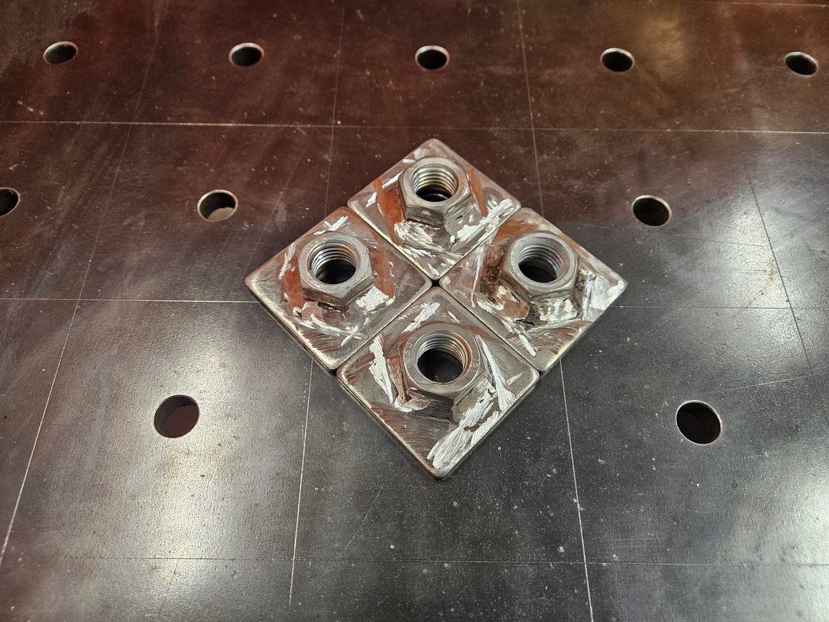 Jalgade alusplaatideks on 6mm paksune 60x60mm terasplaat, kuhu peale M20 mutter keevitatud.