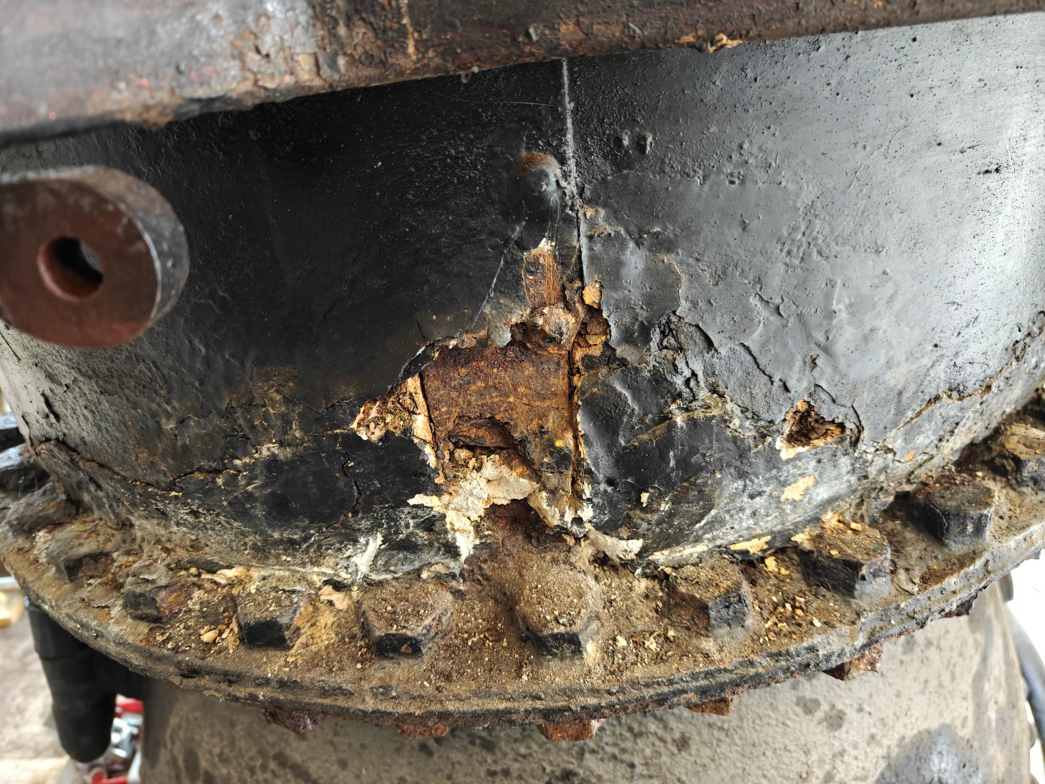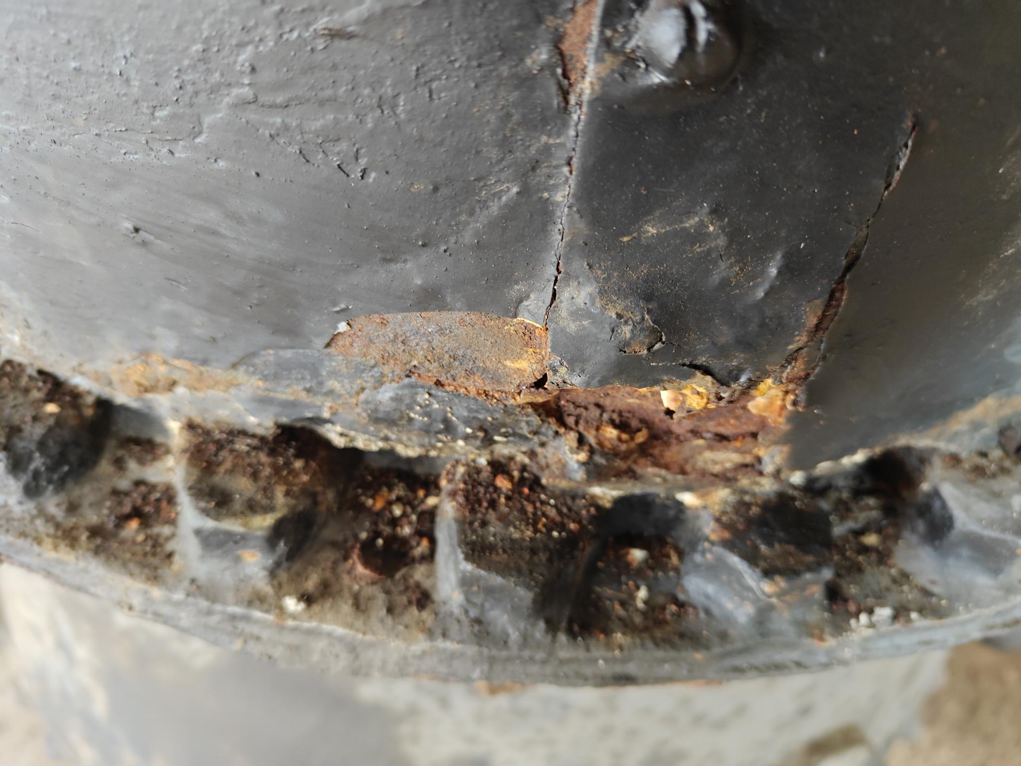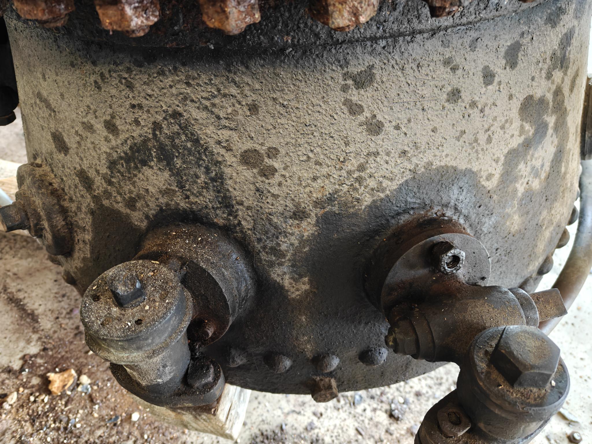 Nüüd olen 2 nädalat selle aurutõllaga jantinud. 2 nädalat WD-ga leotatud, proovitud, jälle leotatud - tänaseks on 3/4 poltidest lahti. Täna sain 4. Eriti kangekaelsed on jäänud. Proovin mitte midagi ära murda, kuigi ühe olen ka murdnud. Kõige hullem, keerata saab ainult lehtvõtmetega. Ei silmus, ei padrun kaela ei mahu. Lehtvõti ei taha kuidagi kaelas püsida, eriti kui ta pole täpne ja sellega pole ka võimalik max. jõudu rakendada. Tol ammusel ajal neid silmuseid ja padruneid tõenäoliselt polnudki. Polnud ka standard võtmeid. Ühe kraani lahtivõtuks võib vabalt olla vaja kolme eraldi võtit. Näiteks 16, 17, 18. Kuigi poldi läbimõõt üks. Võibolla tuleb gaas appi võtta ja kuumaks ajada. Katla kallal on roosteuss kõvasti tööd teinud. Kas ka see auruprits kunagi töövõimeliseks saab, kahtlen siiralt. Aga püüan sinna poole. Panen ka mõne pildi, mis näitab rooste ulatust.