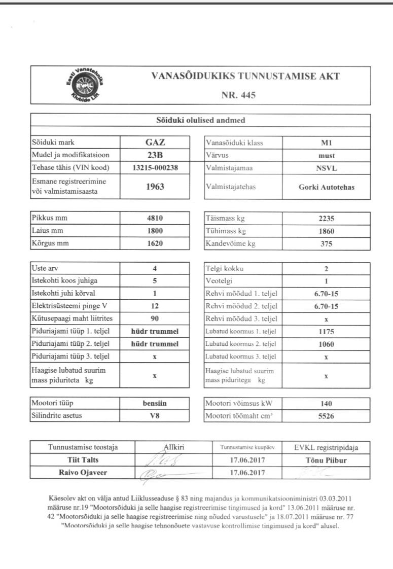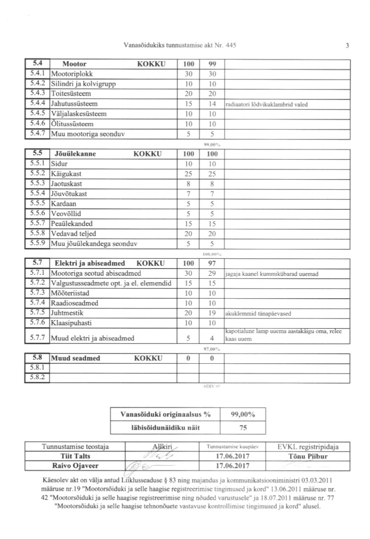 (28-06-2017, 20:09 PM)Formika Kirjutas:  Nii, täna sain Vanasõidukiks tunnistamise akti kätte. Panen nad siia üles üldsusele tutvumiseks. Eks see räägib enda eest ise.