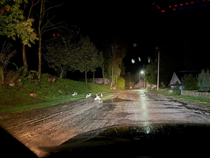 Üleeile keerasime pisut valesti ja tee kadus peaaegu ära ning sattusime Butini külla, kus augud olid tee sees nii suured, et haned pidasid seda järveks ja kümblesid keset teed.