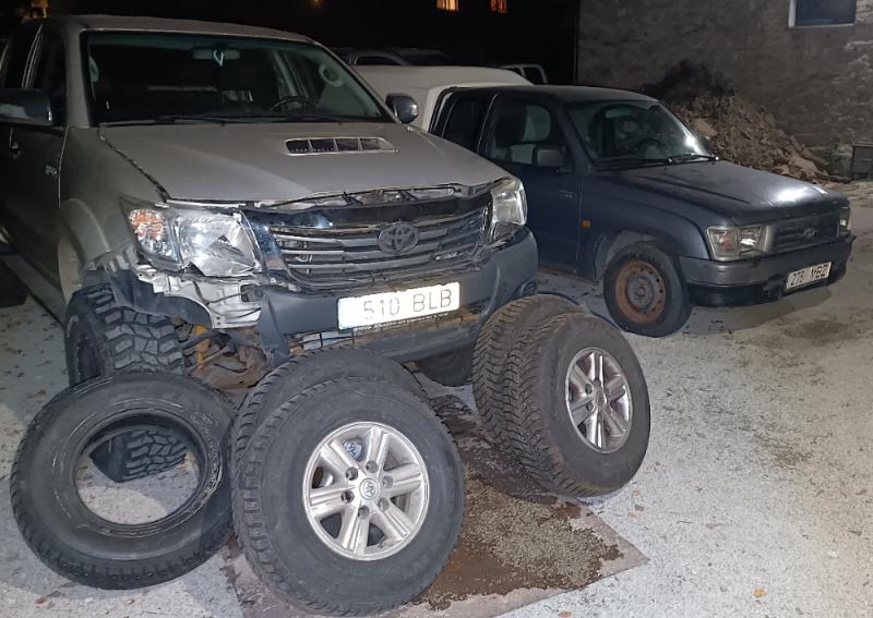 Hilux "Highrider" - rattad vahetatud kaasasolnud kulunud talvekate vastu (ajutiselt), kõik pidurid ühtlasi kontrollitud. Hetkel on masin HiTech nimelises sanatooriumis, peale seda on vaja remontida üks summuti kinnitus, vahetada-kontrollida õlid, määrida kardaaniristid, hankida rehvid ja need vahetada. Ja siis loomulikult tuleb tegeleda katkise mudruga - tuled, stange, paisupaak radikas(-d?), aku...