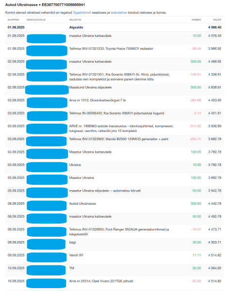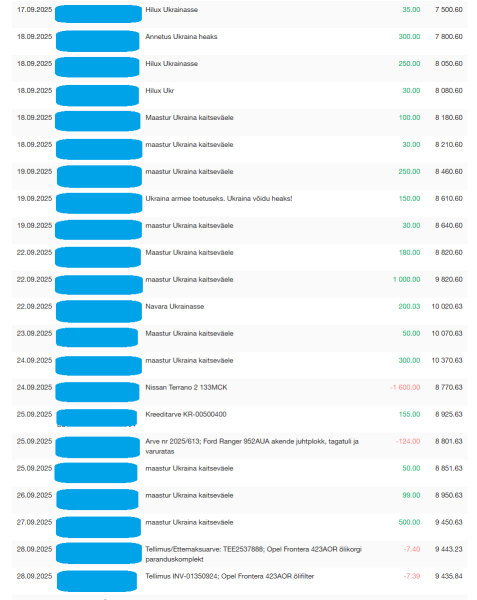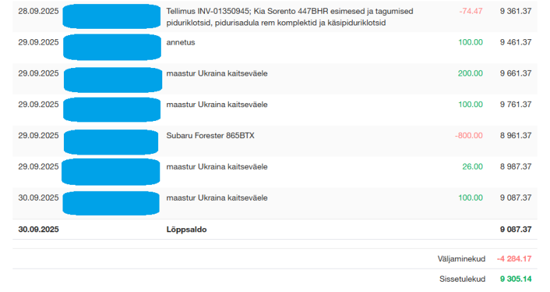 Panen siia Põhja-Tallinna abigaraaži septembri kontoväljavõtte