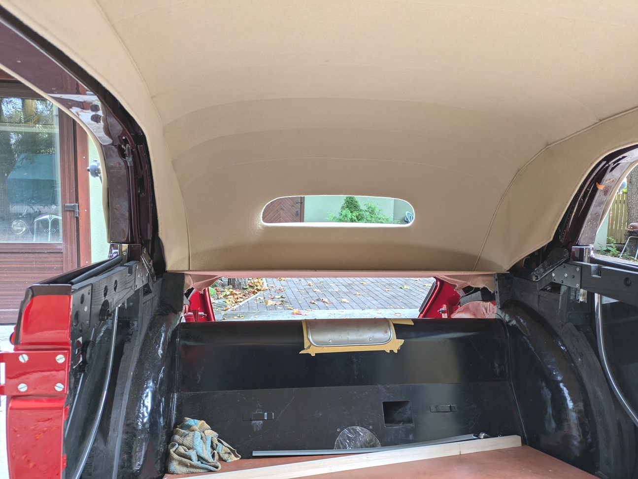 Seni ei ole me leidnud meistrit, kes sellisele katusele suudaks meie standardile vastavalt iluliistud paigaldada. Seetõttu on tulnud amet ise selgeks õppida. Harjutatud on varasemalt kolme DKW auto peal.
