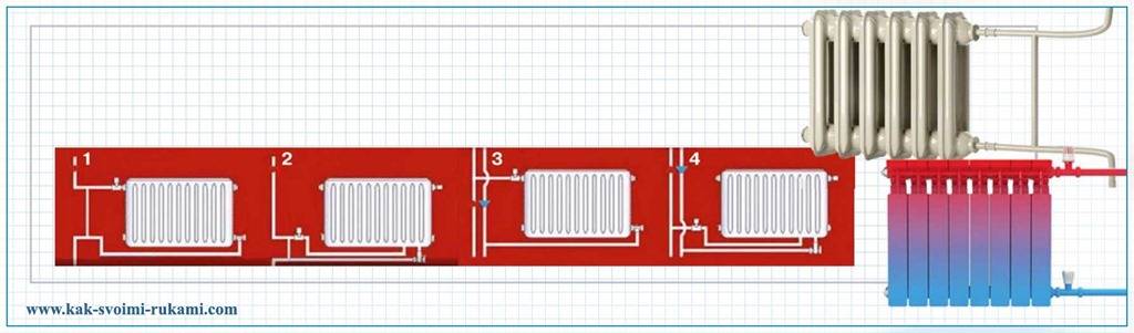 Ühetoru süsteem tähendab seda, et soe vesi hakkab soojasõlmest liikuma ja käib läbi kõikide radikate 1 liini peal ja alles siis hakkab tagasi tulema. 1. radikas antud liinil on siis soojem ja viimane jahedam. Kui keegi paneb vahele kuulkraani ja siis selle kinni keerab, on kõigil külm. Ülevalppol mainitud vahetoru on selle olukorra ärahoidmiseks.