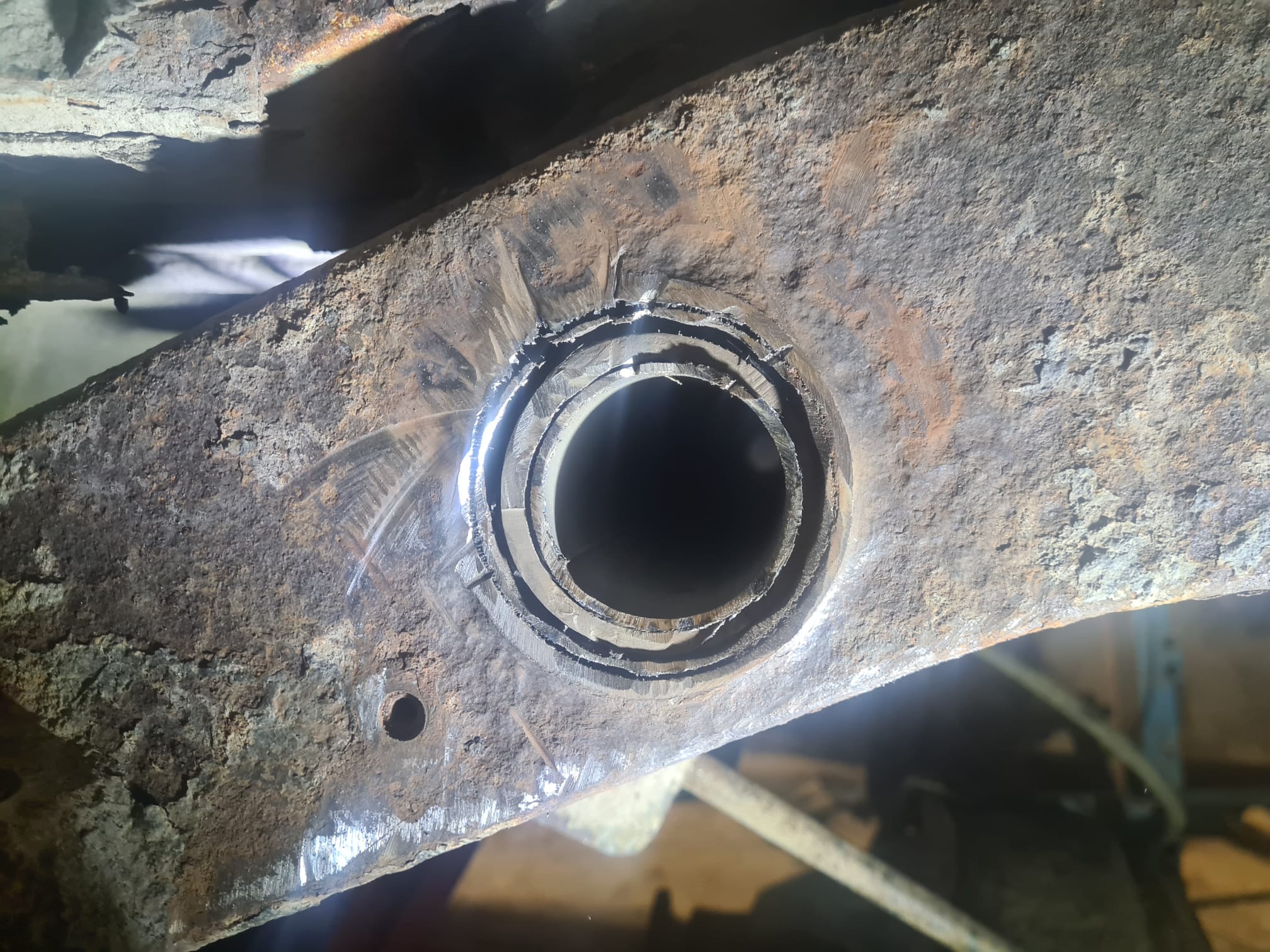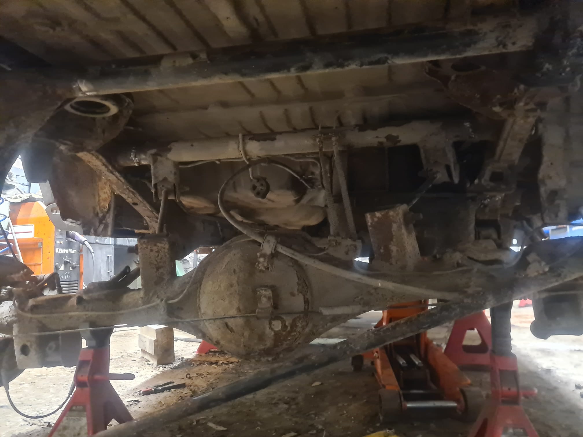 Eile garaažis jätkasime Rene01-ga jätkatud raamijuppide kinni keevitamist. Pumpasin tühjaks paagi ja paigaldasime selle ajutiselt tagasi, venitasime paika tagasilla ja Rene01 keevitas vahetoru ka kinni nii keskelt kui otstest. Tähelepanelik lugeja võib märgata, et sellel torul, mis hoiab ülalt kinni tagasilda ja paaki on sees päris mitu toru. See oli vahetatud korraliku vastu juba enne meid. Me lisasime ühe peenikese stabiliseerimiseks ja siis vahepealse, et asi kokku jookseks.