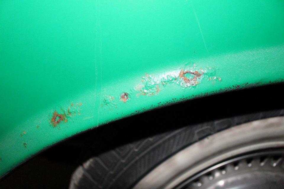 Näha ju, et rooste on läbiv. Paranduse korral keevitustöödest ei pääse.Korrosioonitõrjevahendid hakkavad läbi pahtli väljapoole imenduma ja värv koorub lõpuks maha.