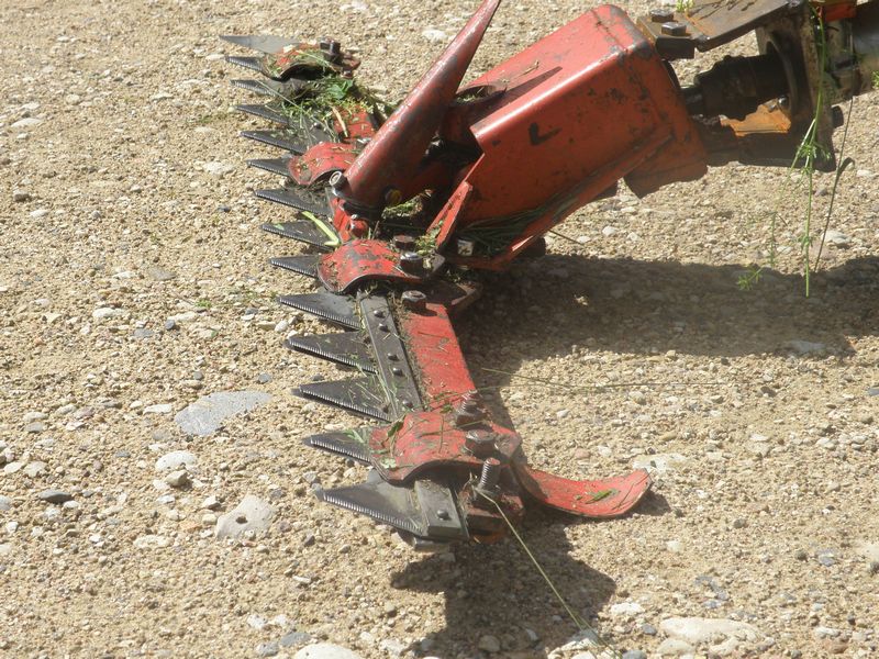 MTZ niidukipea ikka terasest ja malmist, nii tummine, et isegi mootori all olev "suusk" ei kaalunud teda üles. Huvitaval kombel oli uue niidukipeaga vikatite peenhäälestamine (millest meie peaministrihärra jahub