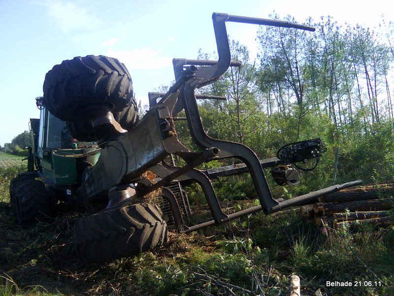 Pildikaader veidi petab, tegelt oli see ratas ikka täitsa maa sees ja masin tundus nii hirmutavalt kaldu ja välja tagurdada üritades kippus veel rohkem kreeni keerama. Vedasin käsitsi lähedalt kaks notti kah tõstuki haardeulatusse, haarasin need vahele vastukaaluks ja tuli masin väntsutades välja. Siis olin alles ehk kolmandat päeva masina kange katsetamas, seega need notid läksid lõugade vahele "parem karta kui kahetseda" ütluse pärast. Tegelikult piisas seal tõstuki enda vastukaalust.