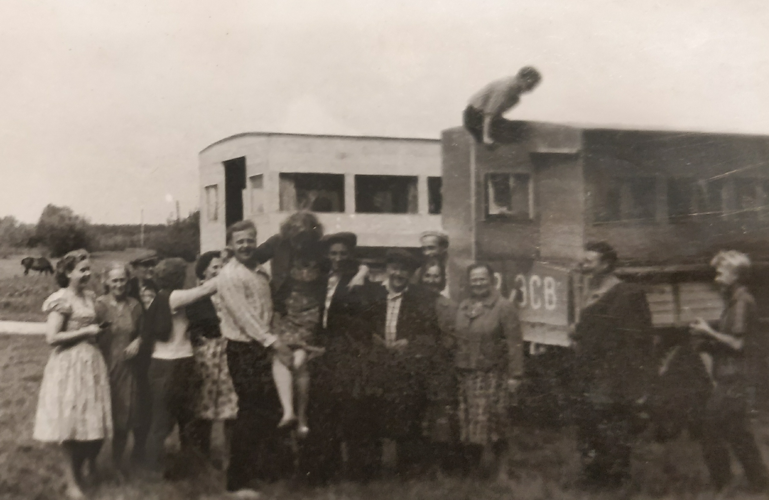Aga siis kaks masinat: esimene oli tavaline GAZ-51 portekas ja kastis siis täpselt kirjeldatud ning kerge viilkatusega u. 2 meetrit kõrge vineerist ja ~4X4 höövelprussidest kuut, kus istmed olid äärtes. Kokku mahtus sinna siis istuma 4 inimest + teetööliste tööriistad. Täpselt selleks seda masinat ka kasutati. Mitte mingeid silte a'la "ljuudi" ei olnud. Üleni tumeroheline. Seda kasutati PEREautona, Heljol oli luba ka nädalavahetustel sõita ja isegi pisikesed lapsed istusid seal kuudis, kui maanteelgi sõideti! Olen ka ise seal kuudis kuhugi ja korduvalt sõitnud 70'detl. Kindlasti mäletan, et neil oli mingi aiamaa-moodi kuurikesega kohake Vaida juures ja seal olen ma selles kuudis sõites käinud.