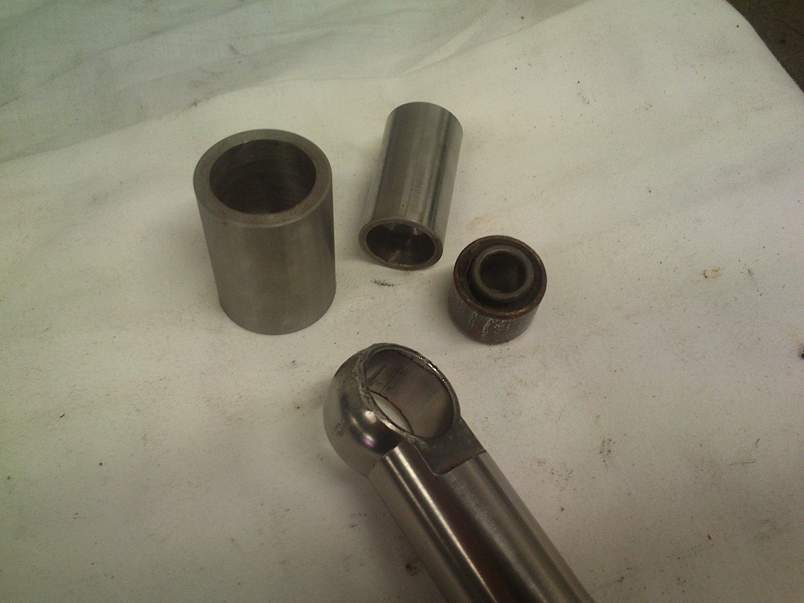 Käivad seal sfäärilised liuglaagrid, önneks meetermöödus (OD=22mm). Sai uued poest soetatud ja paika pandud. Vanade kättesaamiseks sai treitud täpsed öiges möödus puksid, millest ühega lükkab laagrit ja teisega toetab amorti. Töö lihtne ja loogiline.