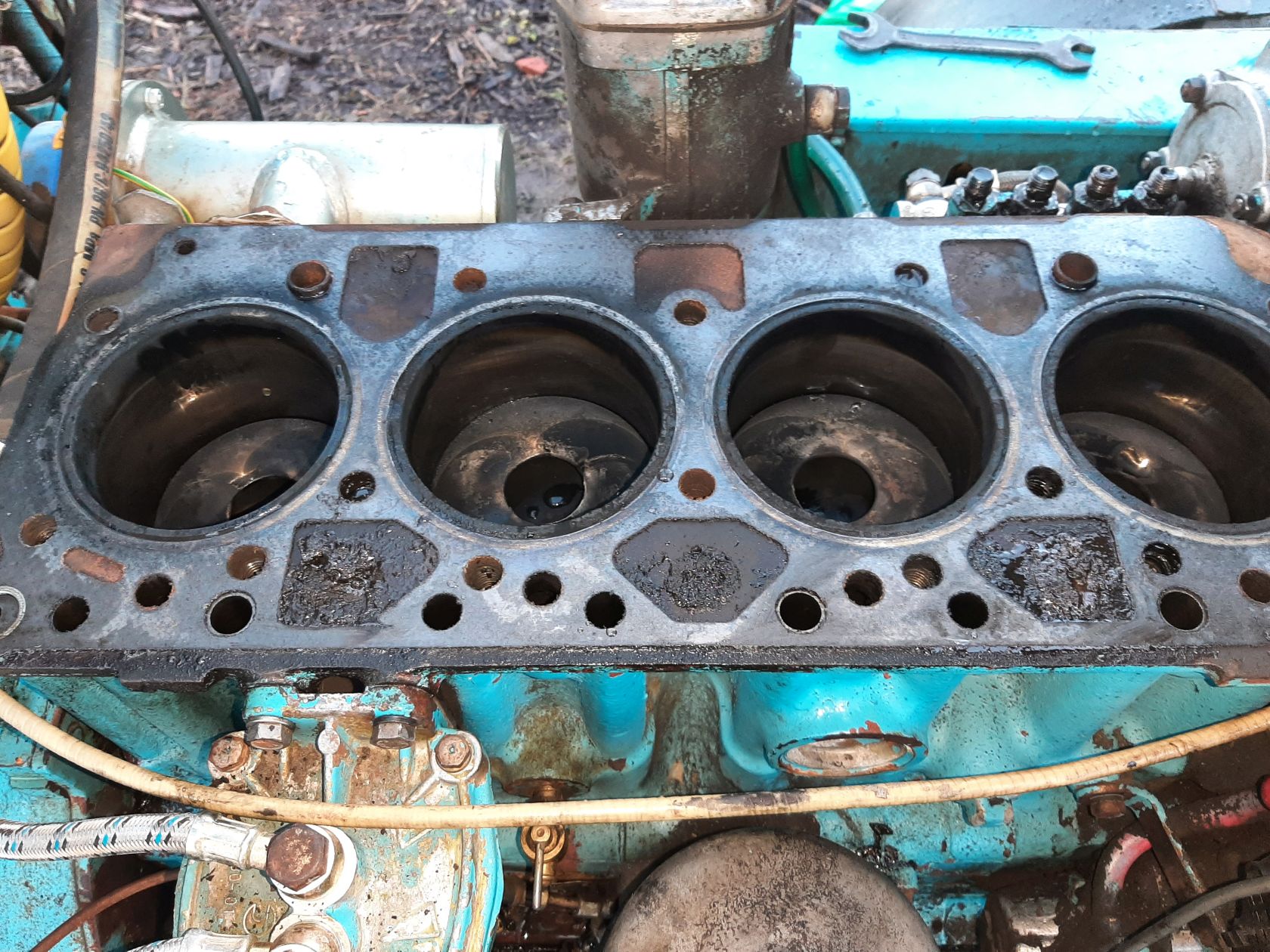 Nii, proovisin uuesti uue tüübi termostaadiga, jamas ikka... Võtsin siis plokikaane maha. Tihend on täiesti terve, kuskil mingeid läbipuhumis jälgi pole ja tihend on igalt poolt korralikult vastus olnud, kaane poldid olid ka korralikult kõvasti kinni. Silmaga nähtavaid pragusid kuskil ka näha pole. Mingit õlist sodi natuke on kaanes suurte aukude juurde ploki peale ladestunud, aga mitte midagi sellist mis terve jahutussärgi ummistaks...