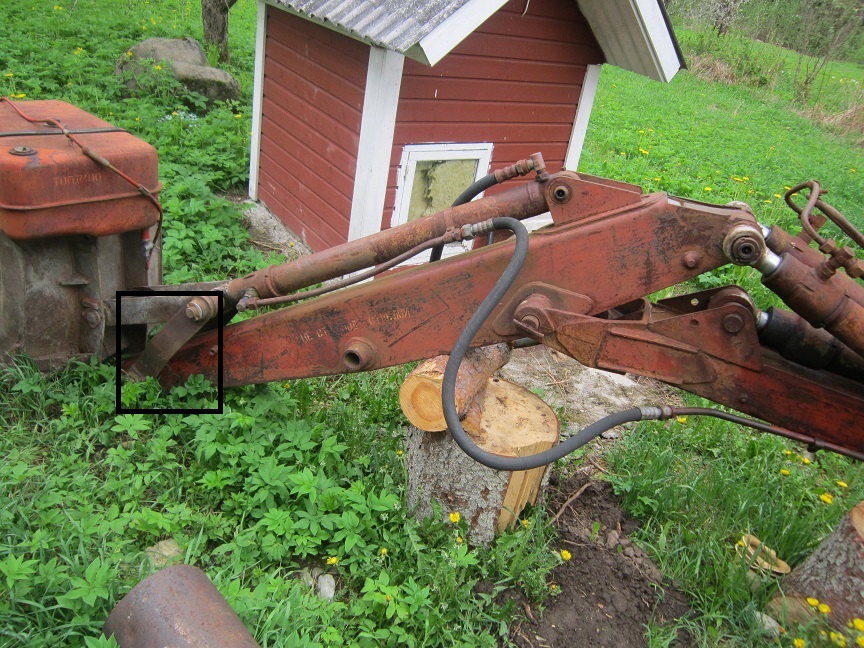 Ühtlasi paistab pildilt ka minu kuulus vintsisüsteem, millega saab tagumise käigu abil puid metsast välja tõmmata ja esimese abil aitab traktoril liikuda pehmel pinnasel. Kui pael on pingul, siis liigub traktor rihma abil edasi ega lase ratast ringi. Nii ei kaeva ta ennast maasse ja see on hea. Pildil nähtav käivitusfunktsioon on hiljem avastatud boonus. Väga positiinve on ka see, et kui jätta traktori taguots käppadega õhku, siis see ei vaju ära. Kopp ja sahk on poole päevaga maas, kui nad üles jätta.