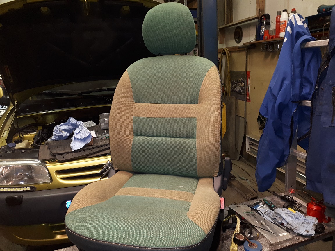 "Uus" juhi iste on oluliselt lõbusama värviga. Istme väga heast seisukorrast pimestatuna ei pannud sinna vedrude peale leevendavat vaibakihti, aga oleksin pidanud. Nüüd on hilja sellest rääkida. Eks järgmise korra panen.