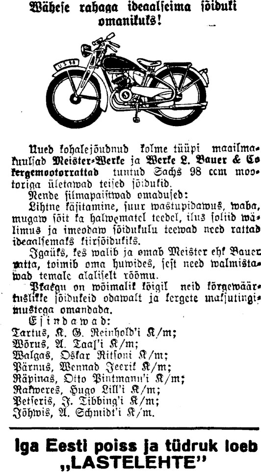 Ka kohapeal kokku panemist aastal 1939 ma ei taha uskuda. Aga oleks hea välja selgitada, kes nende Meistri võrridega siin Eestis sel ajal hangeldas, Meistri jalgrattad meil eriti levinud ei ole olnud, vähemalt minu teada. Kellel on erakogus Meistri "jalgrattasilte", andke teada Raudpatsi e-posti, anonüümsus garanteeritakse!