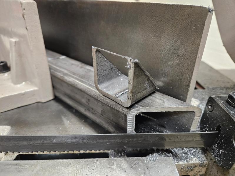 Sissejuhatuseks enne tööd proovilõikusest foto. Kõigepealt lõige 90-kraadi, seejärel lõige 45-kraadi. Ei saa öelda, et ei lõika. Materjal 40x40x4 ning läheb läbi nagu võist. Kuna mul tootmist pole ning kiire peale ei sunni, siis raami allaliikumiskiiruse olen hoidnud võimalikult minimaalse. Säästab tera.