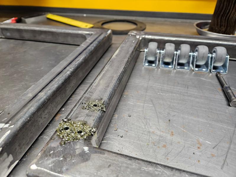 M10 poldid läksid sisse. Kardan, et 4mm toru seina paksust oleks väheks jäänud. Teise mutriga pingutamisel oleks keerme verm või hiljem tuksi keeranud. Minu puhul kipub jõud tihtilugu peast ette jõudma. Rattad lähevad alla M4 väikeste kruvidega. Nende puhul küll muretsema ei pea.
