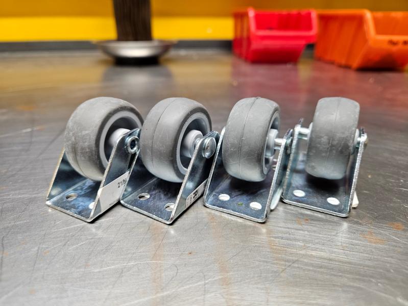 Rattad on taas nö pügihunnikust või siis teise mehe äraviskamisele minevast kolast. Ratta läbimõõt 40mm ning miskise pisut pehmema kummilaadse kattega. Seal veel ka tootekleepsud peal. Raske aru saada, aga juttu tundus olevast 50kg kandevõimest. Kui see tõele vastab, siis minu jaoks on see enam kui piisav. Selliseid rattaid oli mul varuks täpselt 8tk. Tuleb tõdeda, et sellise pingiga töö tegemine on ikka igati nauditav. Kiire, tomu- ja sädemevaba ning võrdlemisi müravaba.