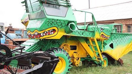 Kombain disain vene moodi kus niva on värvitud vilja söövaks koletiseks.