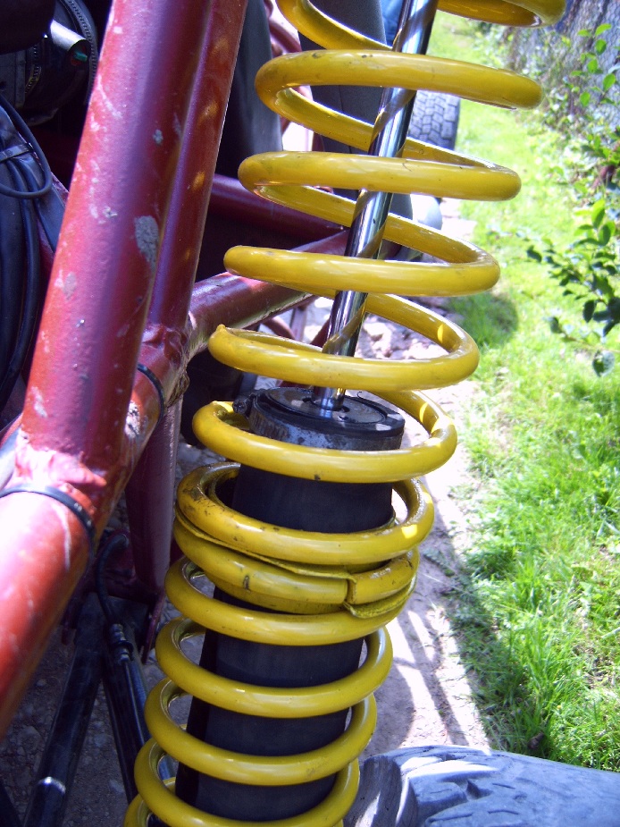 Panin tagavedrustuse ka kokku, panin ikka 2 ühejämedust vedru. Proovisin nii ka, et 1 peenem ja 1 jämedam, aga siis vajus tagumik vastu maad ja oli üldse kuidagi lödi. Tegin põllupeal mõned tiirud ka ja minumeelest sai praegune lahendus väga hea.
