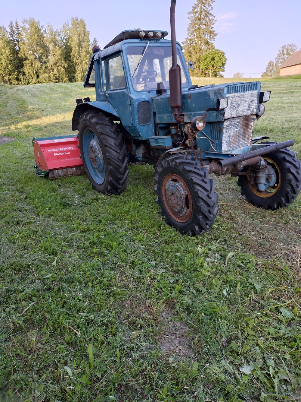 Lõpptulemuseks toimiv asi. Eks see Vogel Noot 2,5m laiusega natuke liiast russile ole. Niiduk kaalub 900Kg ja järsuma mäe peal niidukit tõstes kipub nokka viskama. Praegune hein kõige hullem kasvult ka pole, kuigi on ka kapotini kohtasid. Aga saab hakkama. Augusti keskel ilmselt hakkavad probleemid ka. Aga enda masin ja ise teeb, nagu vaja. Seeg olen rahul tehtuga.