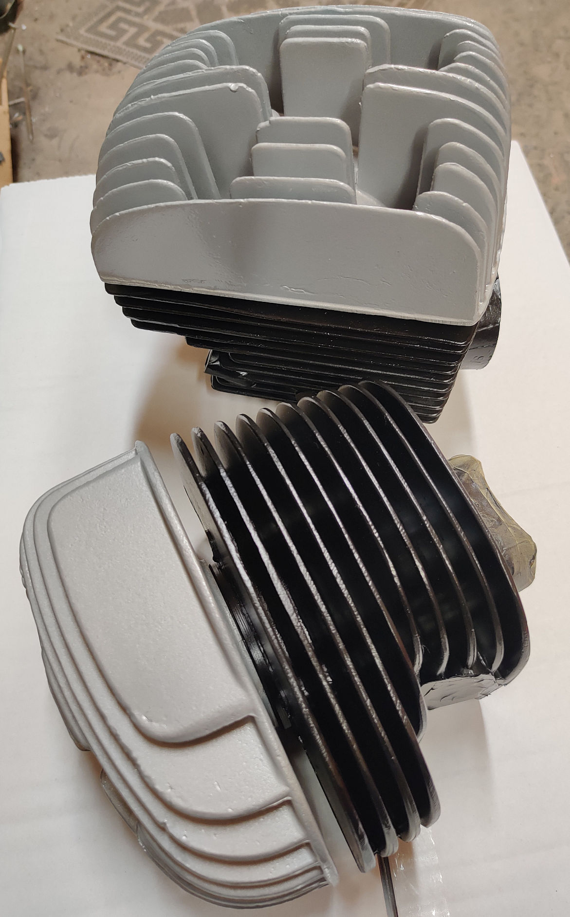 Ja siis saigi selline loogikavastane komplekt tänaseks kokku, et jahedamad silindri ribid värvisin Termanol kuumakindla mustaga ja kuumema silindripea Gravihel PUR veokisarjavärviga, nagu mootorigi. Eks siis saab näha, kuidas kestab. Pole raske need pead maha keerata ja üle värvida mõne muu värviga, kui peaks vaja olema tulevikus.
