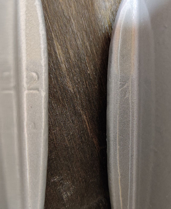 Lisaks tundub mulle ikkagi, et parema kolvi serv kerkib rohkem silindrist välja kui vasak, kuigi parema kolvi kõrgem punkt on hoopis madalam. Ehk kolvi geomeetria paremal ei tundu ka kõige täpsem olema.