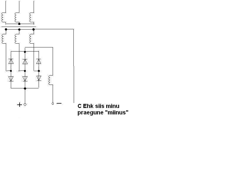 See skeem on traatkeevituse sekundaarpoole mähiste ja dioodsilla põhimõtteline ühendusskeem.