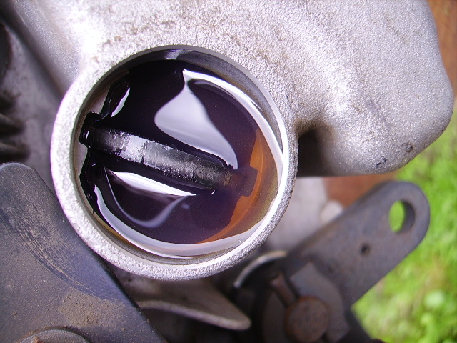 Tund nõrutatud, läks uus õli sisse. Ventilaatorist sai näpuga ringi aetud, seni kuni rattavõllid pöörlema hakkasid. Siis veel tagurpidi käik sisse ja sama tegevust korratud. Õli sai siis 20mm allapoole korgi äärt, nagu ette nähtud.
