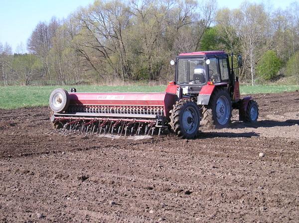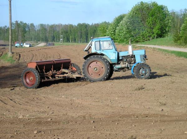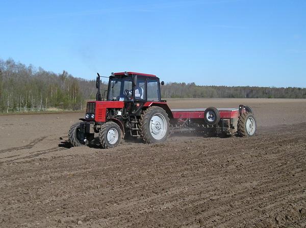 1980.-tel aastatel ülitavaline, kuid nüüd aasta-aastalt harvemaks jääv kevadine vaatepilt Eestimaa põldudel: MTZ-82, selle haakes külvik SZU-3,6, millele omakorda haagitud järele äkked: