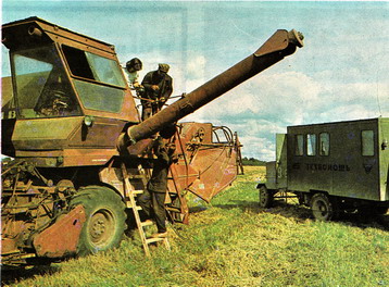 Teraviljakombaini SK-5 Niva remont põllul veoauto GAZ-52 šassiil liikurtöökoda kasutades, näha on ka viimasel haakes olev keevitusagregaat (ZAK?):