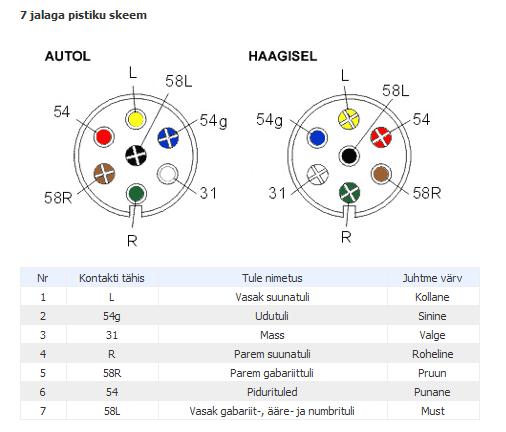 7-kontaktise pesas pole üldjuhul pidevat auto pardapinget välja toodud.