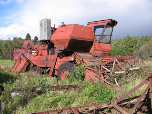 Kunagi see kombain liikus ja oli korralik aga eks aeg teeb oma töö. Tegu siis E-516 B-ga Haljala kolhoosi aegadest, selliseid oli u 10tk ja olemas olid ka E-517 (rohelised) ning üks haruldane E-516 B aastast 87 erinevused 88.a omaga olid laiem kabiin ja salong teistsugune eks kunagi teen pilti ka sest see veel täitsa liigub ja töötab Big Grin. Mulle isiklikult E-516 meeldis oli päris vaikne ja mugav küll rikkus seda madal kliirents ja väikesed rattad. Olen sõita saanud ka täisvarustuses E-517-ga kus peal kompuuter ja muid huvitavaid andureid ( punkri täituvus)