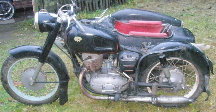 No nüüd tüdruk pildid üles pannud, tsikli margiga vähe eksisin kuna õhtu hämaruses ei lugenud viimast tähte õieti välja. B asemel F.Täna sai siis bensiin viidud ja proovitud kas masin ka häält teeb. Peale kolmandat korda vända löömist hakkas TAAT podisema ja kohe tegin väikese tiiru. Ühesõnaga masin töötab ja liigub. Isegi tuled põlevad. Nüüd ootan Teie arvamust selle masina hinna suhtes.