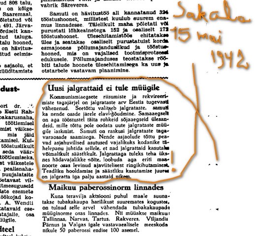 "... juba nüüdki nimetavad paljud meie rahva suurt jalgrataste arvu "ülejõu elamiseks", mis teisigi rattaostjaid võiks teatud mõõdul manitseda kainele ja ainult tarvidusest tingitud kauba ostmisele." ("Rattasõitja käsiraamat", J. Mikiver 1930)