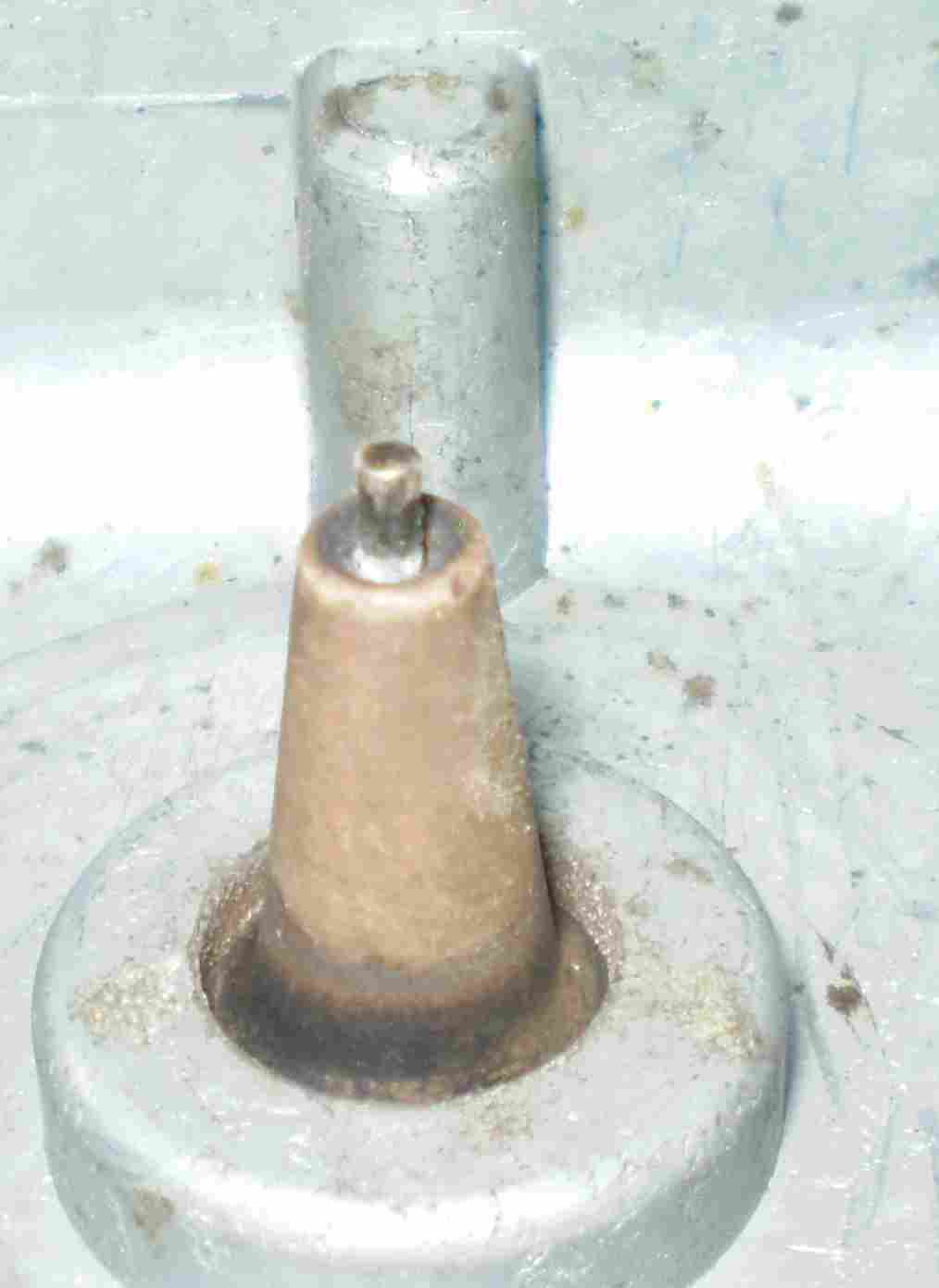 Umbes selline kontrollib põlemisprotsessi Ikaruse märjas geros. See peenike elektrood on ca 10 cm pikkune ja võti nr 27 läheb mutri peale.