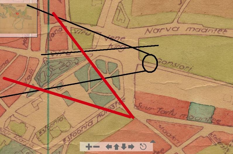 (18-05-2012, 17:30 PM)zazik Kirjutas: See hoone võis olla see, mis praegugi paikneb Laikmaa ja Gonsiori nurgal. Näiteks selle katuselt peaks suund õige olema.Kui täpne olla, siis pilt ei ole tehtud praeguse Laikmaa ja Gonsiori nurgalt - isegi seda nurka polnud siis olemas. Gonsiori tänav on tänapäeval tükk maad lõuna pool. Sealne kant on altes 1957 kuni Viru hotelli valmimiseni tundmatuseni ringi ehitatud. Postitan siia kaks pilti, ühe peal on NL topokaart viiekümnendate keskelt ja teisel tänapäevane aerofoto. Mõõtkava on sama ja võrdluseks on mõlemal tänapäevane katastrijaotus peal.