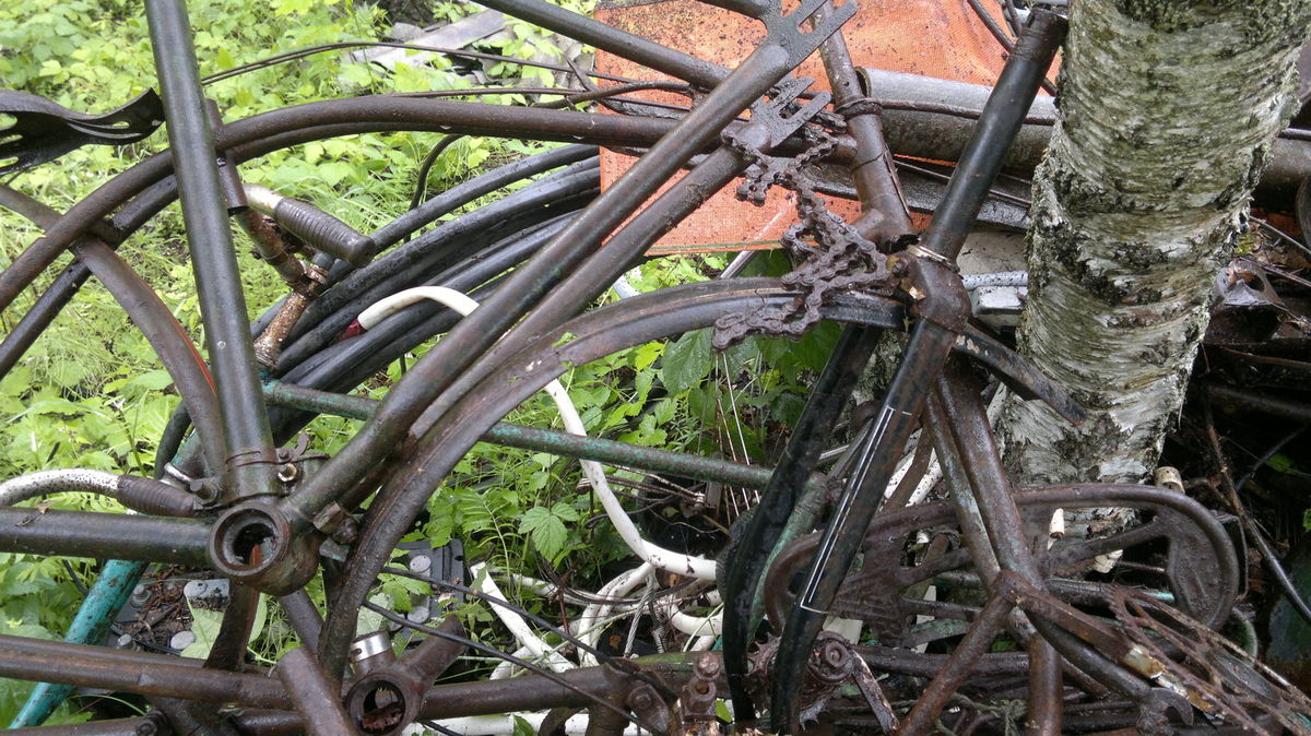 Kuna kola oli palju ja aega vähe, siis tegin mõned ülesvõtted jalgratta raamide hunnikust ja huvitavamatest jublakatest. Kõikide jalgrattaraamide sildi aukude vahet, raaminumbreid jms. ei olnud aega hakata otsima ega mõõtma. Osadelt raamidelt oli keegi torumees ka mõne jupi välja lõiganud.